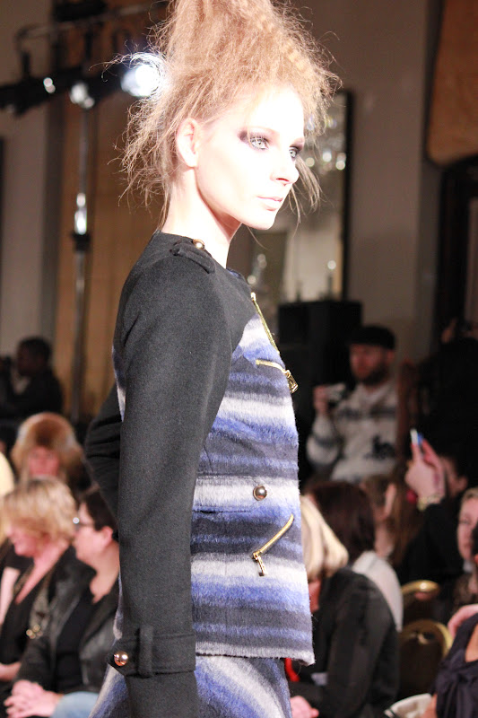 The element to focus on is the detail on the garments. That is what makes this collection stand out. Very fine , beautifully worked embellishments and a cut , that compliments the curves and body of the models. There are alot of waist accentuated dresses and coats with oversized belts.
